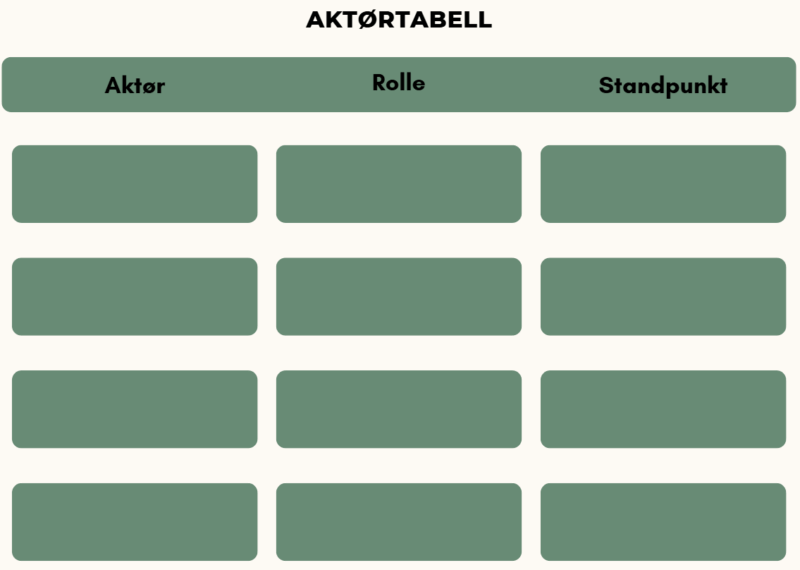 Finn ut hvilke aktører som er viktige for saken, hvilken rolle de har og hva de mener. Du kan se i partienes partiprogram, i mediene og på organisasjoners nettsider for å lære mer om deres synspunkter.